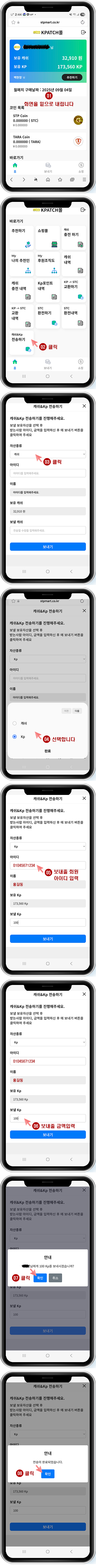 캐쉬 및 KP포인트 보내주기 방법